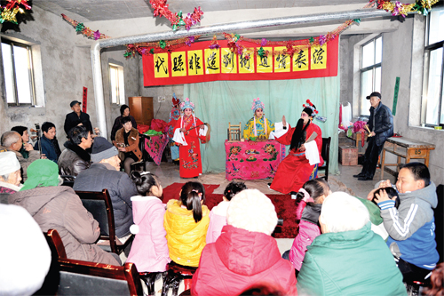 為了搶救劉街道情“非遺”劇種,弘揚和傳承雁門文化,新高鄉(xiāng)劉街村“ 兩委”班子多方籌措資金,購買服裝道具和文武場樂器,于近期成立了由30多人組成的劉街道情劇團,由老藝人傳授技藝。他們經(jīng)過3個多月的精心排練,已排練出《李大開店》、《夜宿花亭》、《雷橫磕枷》、《大上吊》、《劈棺》、《耍火》等8個劇目,將于元宵節(jié)期間亮相于縣城街頭,向全縣人民匯報演出。圖為熱心觀眾觀看劉街道情《李大開店》劇目的排練。(石俊文 劉睿 攝)