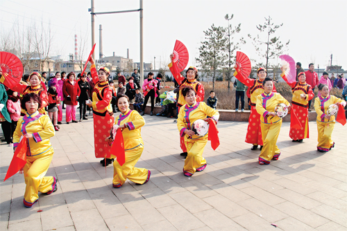 3月8日,原平市北城街道城西社區(qū)舉辦了為“冬季行動喝彩”歌舞聯(lián)歡。該市各支舞蹈隊匯集該社區(qū)活動中心,表演了她們的拿手節(jié)目?;顒蝇F(xiàn)場,豐富多變的造型、神采飛揚的舞姿,充分展示了原平市勞動婦女的風(fēng)采。圖為社區(qū)舞蹈隊正在演出《“冬季行動”就是好》節(jié)目。(褚震 攝)