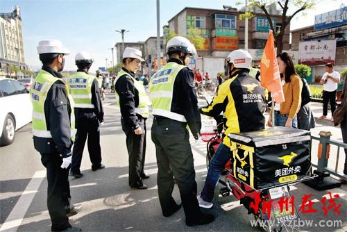 4 月18 日,市公安局交警支隊組織直屬大隊民警在城區(qū)主要街道進行電動車交通違法整治,并勸導(dǎo)騎電動車的市民在出行時,切記安全,各行其道,遵守交通規(guī)則。圖為查處現(xiàn)場。(張軍 攝影報道)