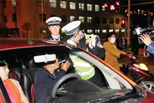 五月五日是全國集中整治酒駕統(tǒng)一行動日,為嚴厲打擊酒駕醉駕違法犯罪行為,全力防范因酒駕醉駕而導致的道路交通事故,靜樂縣公安交警大隊合理布控、設置流動崗,采取分時段蹲點,嚴查酒駕、醉駕等重點違法行為,圖為夜查現(xiàn)場。(記者 王國棟 攝)