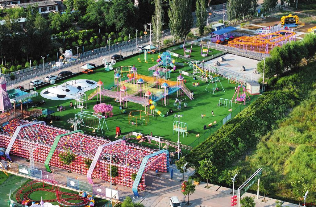 近年來,河曲縣唐家會村圍繞“宜居宜業(yè)和美鄉(xiāng)村”建設(shè)目標(biāo),通過農(nóng)旅項目集群化、文化資源品牌化、政策激勵精準(zhǔn)化等舉措,探索形成了“特色種植支撐旅游、旅游反哺農(nóng)業(yè)品牌、文化激活鄉(xiāng)村美學(xué)”的農(nóng)文旅深度融合發(fā)展之路。圖為村內(nèi)的游樂園。(馮曉磊攝)