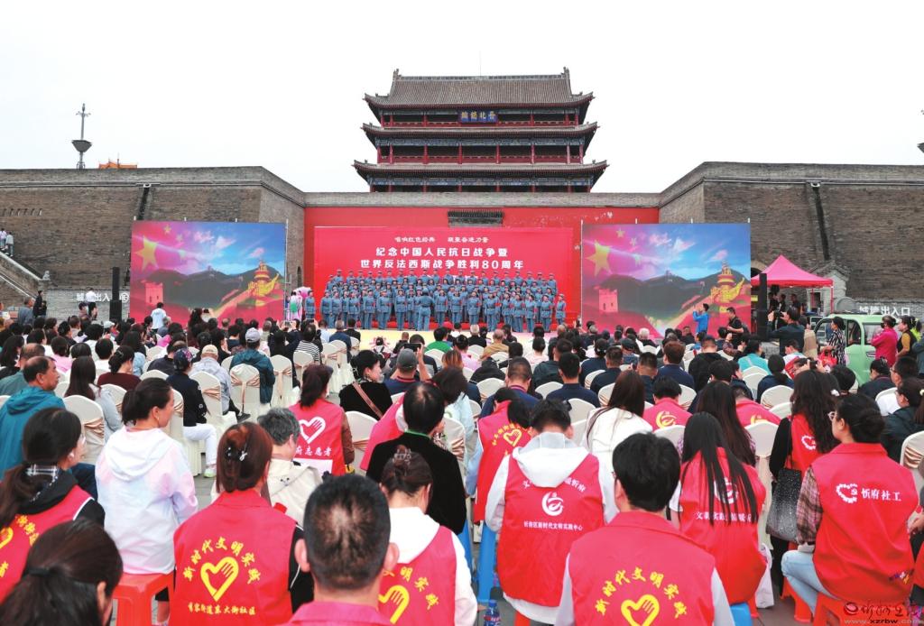 9月5日,由山西省文學(xué)藝術(shù)界聯(lián)合會指導(dǎo)、中共忻州市委宣傳部主辦、忻州市文學(xué)藝術(shù)工作者聯(lián)合會承辦的“唱響紅色經(jīng)典,凝聚奮進力量”——紀念中國人民抗日戰(zhàn)爭暨世界反法西斯戰(zhàn)爭勝利80周年文藝展演在忻州古城北城門樓廣場舉行。(本報記者 張存良攝)