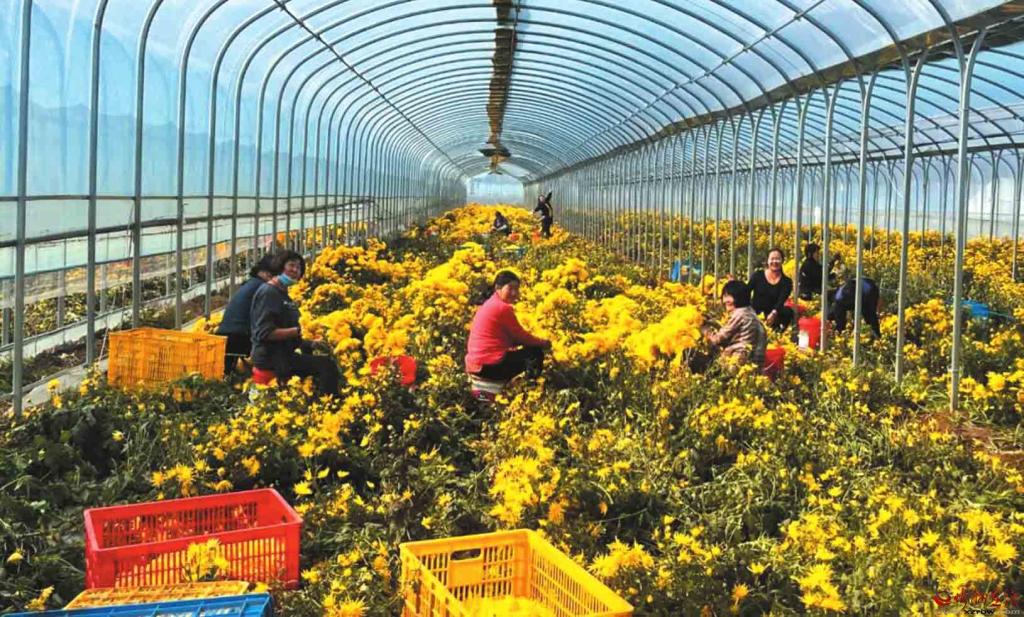 “你看這花,今年長得比去年還壯實?!闭诓烧墓と藙⒂⑿χe起一朵金絲菊,花瓣上還沾著清晨的露水,“我家就在附近村,自從基地建起來,我農(nóng)閑時就來干活,既能照顧家里,一天還能掙100元,比外出打工舒心多了?!闭f話間,她又彎腰采下一朵,小心翼翼地放進筐子中,“這花金貴,下手得輕,不然花瓣掉了就賣不上好價錢。”