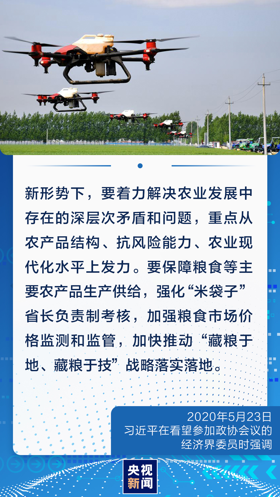 對(duì)我們這樣一個(gè)有著14億人口的大國來說,農(nóng)業(yè)基礎(chǔ)地位任何時(shí)候都不能忽視和削弱,手中有糧、心中不慌在任何時(shí)候都是真理。今年開春,習(xí)近平總書記對(duì)全國春季農(nóng)業(yè)生產(chǎn)工作作出重要指示強(qiáng)調(diào),越是面對(duì)風(fēng)險(xiǎn)挑戰(zhàn),越要穩(wěn)住農(nóng)業(yè),越要確保糧食和重要副食品安全。