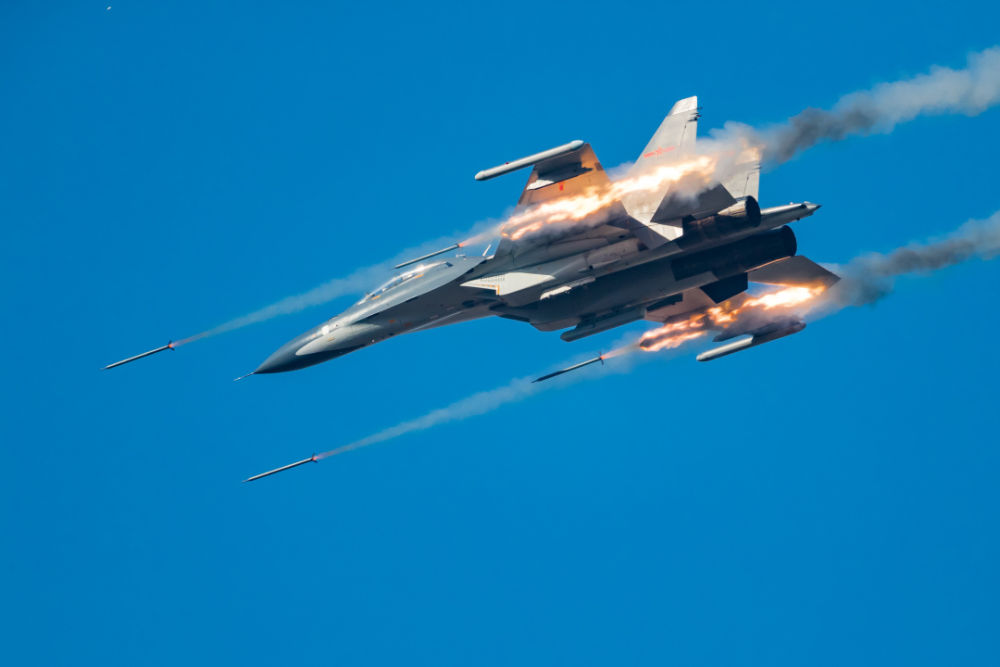 參加空軍“金飛鏢-2018”比賽的戰(zhàn)機進行實彈攻擊(2018年4月24日攝)。新華社發(fā)(楊盼 攝)