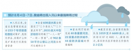 據(jù)氣象部門(mén)報(bào)告,預(yù)計(jì)8月4日-7日,我省將出現(xiàn)入汛以來(lái)最強(qiáng)降雨過(guò)程。為做好此次強(qiáng)降雨防范應(yīng)對(duì),8月3日下午,省防汛抗旱指揮部組織了緊急會(huì)商,進(jìn)一步強(qiáng)弱項(xiàng)、補(bǔ)短板,全力做好各項(xiàng)工作,確保安全度汛。