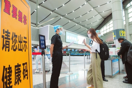 八月五日,太原武宿國際機場候機大廳,工作人員和乘客均全程佩戴口罩,各工作崗位防護工作有序嚴(yán)格進行,切實做到疫情防控常態(tài)化。仙博攝