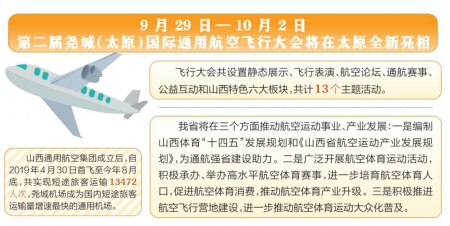 為加大我省通航產(chǎn)業(yè)招商引資力度,促進(jìn)山西通航短途運(yùn)輸、低空旅游、應(yīng)急救援、飛行培訓(xùn)等業(yè)務(wù)飛速發(fā)展,加快航空科技、航空制造、高新技術(shù)研發(fā)等創(chuàng)新企業(yè)落地山西,推動(dòng)全產(chǎn)業(yè)鏈通用航空業(yè)加快發(fā)展,在成功舉辦第一屆的基礎(chǔ)上,9月29日—10月2日,第二屆堯城(太原)國際通用航空飛行大會(huì)將在太原全新亮相。