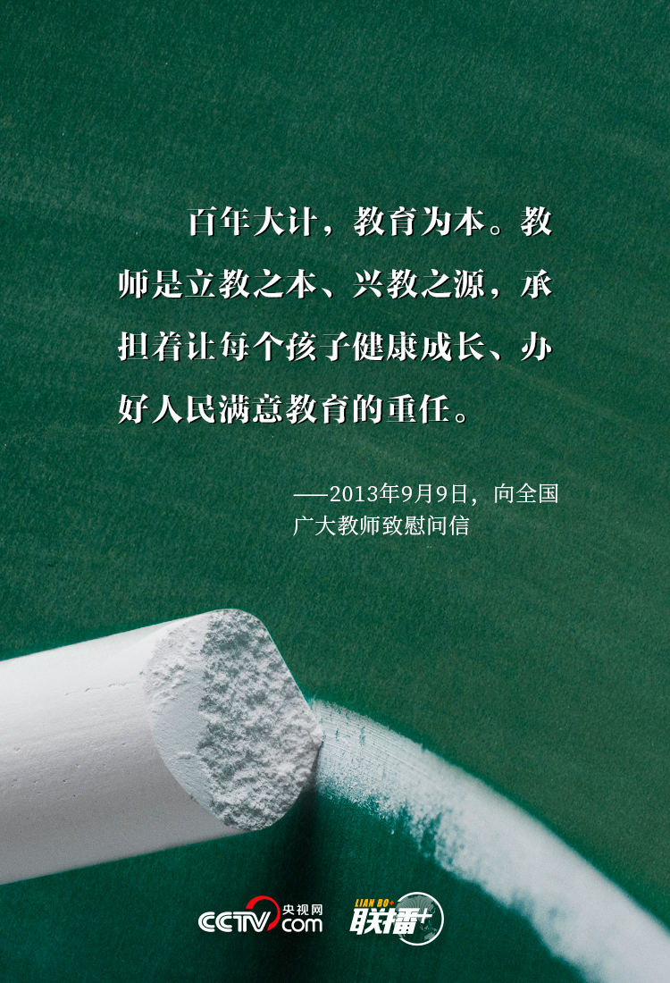 “三寸粉筆,三尺講臺(tái)系國運(yùn);一顆丹心,一生秉燭鑄民魂?!绷?xí)近平總書記一直以來高度重視中國教育發(fā)展和教師工作,身體力行倡導(dǎo)尊師重教,深刻指出“好老師”對(duì)于個(gè)人、集體乃至民族復(fù)興的重要意義,深情表達(dá)對(duì)中華民族“夢(mèng)之隊(duì)”筑夢(mèng)人的殷殷厚望。央視網(wǎng)《聯(lián)播+》特梳理,與您共同學(xué)習(xí)。