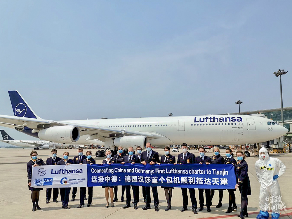 △5月30日,德國漢莎航空LH342航班承運約200名德國企業(yè)家、技術專家等旅客,自法蘭克福飛抵天津。這是中德之間的首班復工包機,兩國間的“快捷通道”得以實現(xiàn)。