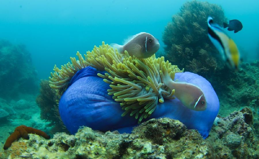 這是2020年5月28日在中國海南三亞蜈支洲島海域拍攝的與??采男〕篝~。新華社記者 楊冠宇 攝