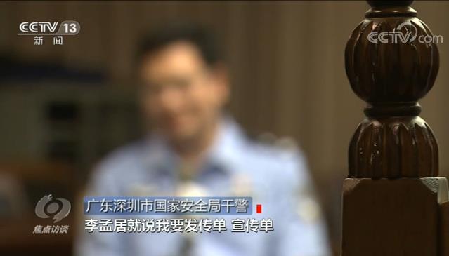 廣東深圳市國家安全局干警:到酒店的時候把附近的照片,傳給了跟陳亞麟同在的一個七人群。陳亞麟當(dāng)時調(diào)侃他,你要在那里掛臺灣“國旗”,李孟居就說我要發(fā)傳單、宣傳單,就是所謂的宣傳單,就是事先裝備好的香港加油的宣傳單。