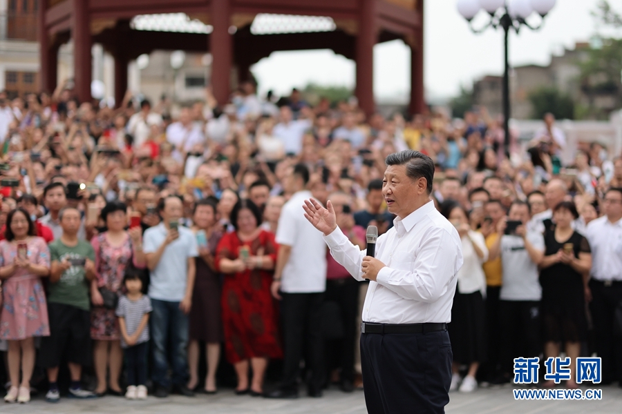 當?shù)厝罕姾陀慰蛡円姷娇倳泚砹?,爭相圍攏上來向總書記問好。習近平祝大家生活愉快、健康幸福。他指出,我國改革開放和經(jīng)濟特區(qū)的建設(shè)同大批心系鄉(xiāng)梓、心系祖國的華僑是分不開的。我們即將全面建成小康社會、開啟全面建設(shè)社會主義現(xiàn)代化國家新征程,向第二個百年奮斗目標進軍。到本世紀中葉把我國建成富強民主文明和諧美麗的社會主義現(xiàn)代化強國,是海內(nèi)外全體中華兒女的共同心愿。今年是經(jīng)濟特區(qū)建立40周年,我特地來汕頭經(jīng)濟特區(qū)考察調(diào)研,就是要向國內(nèi)外宣示,中國共產(chǎn)黨領(lǐng)導中國人民將堅定不移走改革開放道路,奮發(fā)有為推進社會主義現(xiàn)代化建設(shè),鍥而不舍實現(xiàn)中華民族偉大復興的中國夢。希望鄉(xiāng)親們攜手努力,共同奮斗!