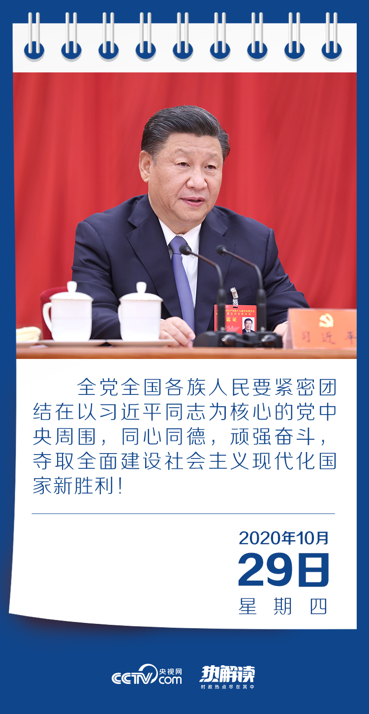 10月29日,中國(guó)共產(chǎn)黨第十九屆中央委員會(huì)第五次全體會(huì)議在金色的秋天里勝利閉幕。全會(huì)由中央政治局主持。中央委員會(huì)總書記習(xí)近平作了重要講話。