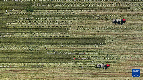 9月23日,菜農(nóng)在甘肅山丹馬場蔬菜基地里收獲蔬菜(無人機(jī)照片)。(新華社發(fā) 王超 攝) 秋分時節(jié),地處祁連山北麓、河西走廊中段的甘肅省張掖市各種作物陸續(xù)成熟,農(nóng)民開始收獲,田間一派豐收景象。 (責(zé)任編輯:蔡文斌) |
