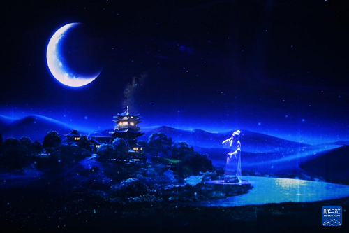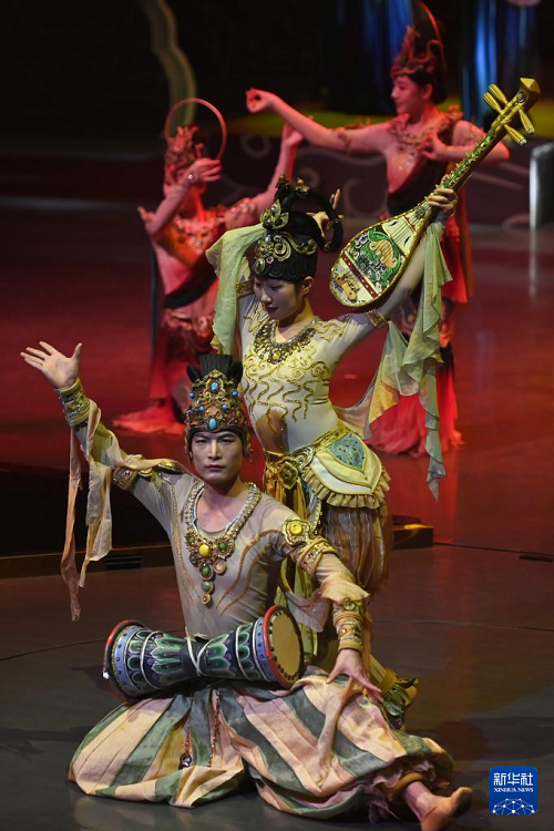 10月12日,演員在《樂動敦煌》中表演。(新華社記者 范培珅 攝)