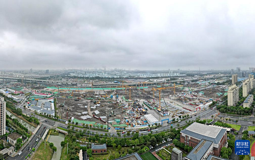 這是10月16日拍攝的建設(shè)中的上海寶山站(無人機照片)。(新華社記者 方喆 攝)