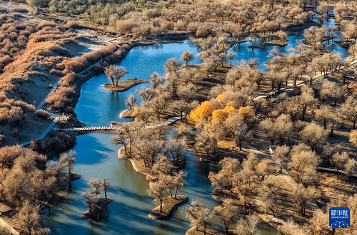 這是10月30日拍攝的胡楊林(無人機(jī)照片)。(新華社記者 連振 攝)