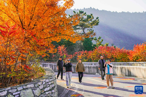 11月4日,游客在河北省遵化市南山常樂(lè)谷景區(qū)賞景拍照。(新華社發(fā) 劉滿倉(cāng) 攝)