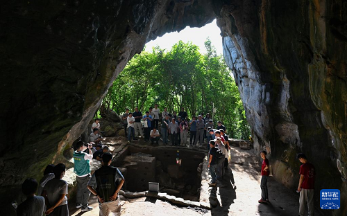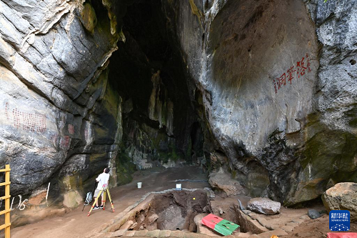 11月8日,考古專(zhuān)家在三亞落筆洞遺址觀察發(fā)掘現(xiàn)場(chǎng)。(新華社記者 郭程 攝)