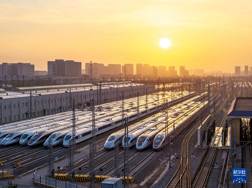 春運大幕即將拉開,中國鐵路西安局集團(tuán)有限公司西安動車段內(nèi),高鐵動車組靜候待發(fā)。