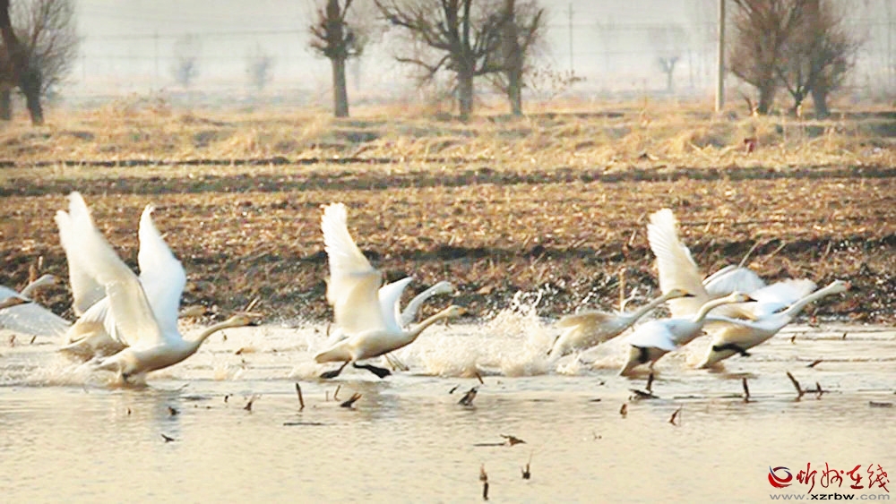 據(jù)了解,天鵝主要棲息于海岸、湖泊等水域,成對或結群活動,以各種水生植物和藻類為食,而且,天鵝對棲息地生態(tài)環(huán)境要求極高,一般選擇無污染、食物充足的濕地作為棲息地。近年來,我市持續(xù)加大生態(tài)建設力度,不斷改善生態(tài)環(huán)境,滹沱河、雙乳湖等地,都已經(jīng)成為多種鳥類遷徙的中轉站和棲息地。(郭耀華 攝)