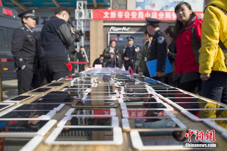 3月2日,山西太原警方發(fā)還民眾被盜手機。近日,太原市公安局偵破一個手機扒竊犯罪團伙,破獲案件200余起,追繳手機180余部。張云 攝