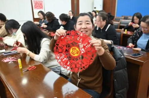 此次活動特邀五臺非遺剪紙傳承人王森煒現(xiàn)場教學,從折疊技巧到紋樣設計,從鏤空雕刻到細節(jié)精修,干警們在老師的指導下沉浸式感受剪紙藝術(shù)的魅力。紅紙翻飛間,一幅幅寓意幸福吉祥、展現(xiàn)女性力量的剪紙作品逐漸成型。指尖流淌的不僅是傳統(tǒng)技藝,更是檢察女性剛?cè)岵⒔承莫氝\的精神底色。