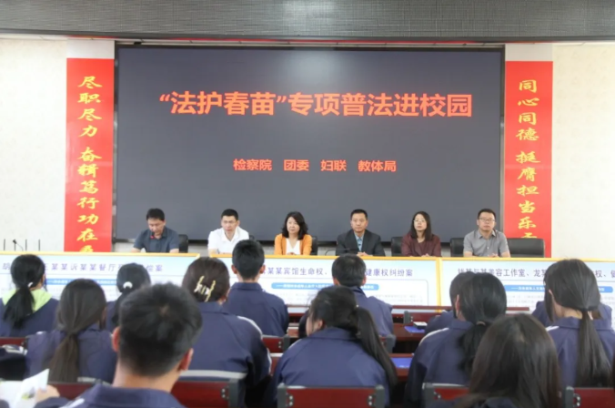 新學(xué)期伊始,為進(jìn)一步提升未成年人法治意識(shí)、法治觀(guān)念和自我保護(hù)能力,9月9日,靜樂(lè)縣檢察院攜手縣人大、教體局、團(tuán)縣委、婦聯(lián)共同走進(jìn)靜樂(lè)縣職業(yè)中學(xué)開(kāi)展“法護(hù)春苗”法治進(jìn)校園活動(dòng),將法治關(guān)懷與守護(hù)送到學(xué)生身邊。院黨組書(shū)記、檢察長(zhǎng)李冰參加活動(dòng)。