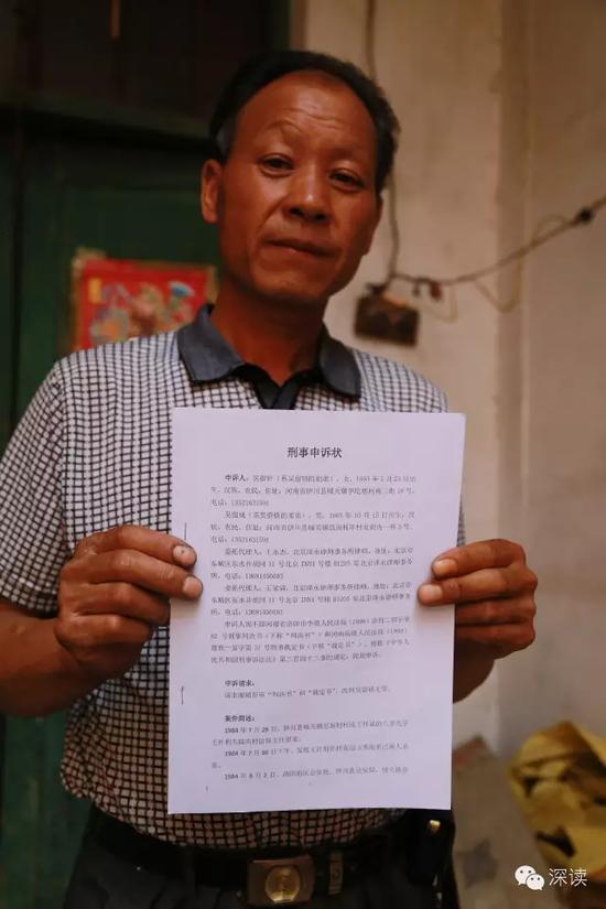“那個(gè)時(shí)候距離吳留鎖被抓已經(jīng)過(guò)去了十幾年,我們都大了,每隔十天半月就能接到哥哥從獄中寫來(lái)的信。他在獄中一直喊冤,讓我們?cè)谕饷嫣嫠慈ド砩系脑┣?。因?yàn)槲覀兌际寝r(nóng)村人,沒(méi)有什么文化,所以不知道該怎么辦?!眳橇粽湔f(shuō)。
