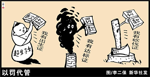 長期以來,一些部門熱衷以罰代管,甚至給罰款定指標(biāo),導(dǎo)致監(jiān)管出現(xiàn)不同程度的混亂。比如對一些該給予整改關(guān)停的違法經(jīng)營活動,以罰了事,這不僅使得有關(guān)危害得不到遏制,還讓相關(guān)市場主體產(chǎn)生“罰了就沒事了”的錯覺。在以罰為主的思維下,一些企業(yè)基于違法成本遠(yuǎn)低于非法暴利的算盤寧肯“長期受罰”,而少數(shù)執(zhí)法部門則動起了“養(yǎng)魚執(zhí)法”的心思。
