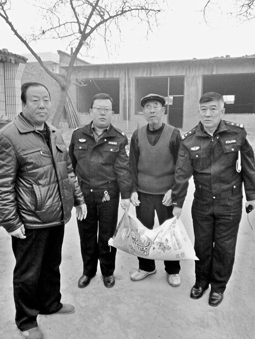 近年來,大隊把扶貧工作當作一項政治任務抓在手上,為了更好地精準扶貧,按計劃力爭提前完成扶貧攻堅任務。2015年,李晉生擔任了原平市南白鄉(xiāng)尚義村的第一書記,負責該村的幫扶工作。南白鄉(xiāng)尚義村是原平市的重點貧困村,也是交警大隊幫扶村,全村204人,貧困人口占80%。當年12月17日,他自籌2000多元,購買了米、面、糧、油,與大隊的4位民警來到了南白鄉(xiāng)尚義村走訪慰問特困家庭。在全市開展精準扶貧的攻堅階段,為了讓特困家庭度過溫暖的冬季,交警大隊民警進村入戶共慰問五保戶、特困戶8戶,為他們送去了面粉、大米和食用油。同時,大隊長還看望了90歲高齡的抗戰(zhàn)老兵趙書良,1925年出生的趙書良老人,17歲時就參軍,在抗日戰(zhàn)爭中多次立功授獎。當老人雙手接過慰問金后,激動地說:“還是共產(chǎn)黨好,人民警察和人民真是心連心啊!”
