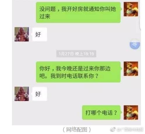 因擔(dān)心“服務(wù)員”的“質(zhì)量”不好,阿強(qiáng)讓“夢(mèng)醒時(shí)分”幫忙挑選一個(gè)好一點(diǎn)的“服務(wù)員”。對(duì)方 說(shuō)沒(méi)問(wèn)題,并說(shuō)將“服務(wù)員”的照片發(fā)給他挑選,覺(jué)得哪個(gè)合心水就安排哪個(gè)過(guò)來(lái)。想不到對(duì)方的服 務(wù)這么好,阿強(qiáng)心里非常興奮。 不過(guò),阿強(qiáng)的興奮很快被氣憤所代替——因?yàn)楫?dāng)“夢(mèng)醒時(shí)分”從微信上發(fā)過(guò)來(lái)的女子照片,竟然是阿強(qiáng)在外地打工的老婆!