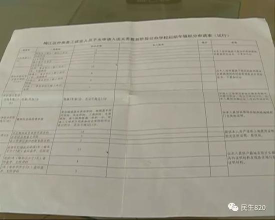 因?yàn)樽约旱膽艏辉诿方瓍^(qū),所以必須按照算積分的方式,才能更好地選擇學(xué)校。可是,當(dāng)他看到《梅江區(qū)外來務(wù)工就業(yè)人員子女申請入讀義務(wù)教育階段公辦學(xué)校起始年級積分申請表》(試行)的最后一條規(guī)則寫著:“要由本人提供派出所的無犯罪記錄”時,劉先生表示,這如果有污點(diǎn),提供之后不是對小孩很不利?