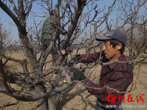 原平子干鄉(xiāng)子干村萬畝酥梨基地成為該村發(fā)家治富的支柱產(chǎn)業(yè)。開春以來,該村村民借市委“冬季行動”強(qiáng)勁東風(fēng),早動手、干實(shí)事,快致富。他們及時(shí)走進(jìn)田間地頭開展梨園管理,施肥、刮皮、噴藥、剪技。圖為該村村民伍師傅正在為梨樹剪技。(李玉生)