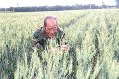 6月14日,農(nóng)民在原平市平地泉村地頭查看麥苗生長(zhǎng)情況。該市積極引導(dǎo)農(nóng)民落實(shí)好一噴三防、拔草除雜等關(guān)鍵田管措施,確保種子純度。小麥進(jìn)入飽滿(mǎn)期,長(zhǎng)勢(shì)良好,豐收在望。(褚震 攝)