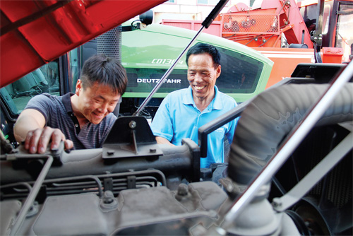 7 月13 日,兩位農(nóng)民在原平市農(nóng)機(jī)公司選購?fù)侠瓩C(jī)。近年來,原平市落實(shí)各項惠農(nóng)政策,極大地調(diào)動了農(nóng)民購買和使用農(nóng)機(jī)具的積極性,在小麥?zhǔn)崭罱咏猜曋H,農(nóng)民抓緊時間選購?fù)侠瓩C(jī)等國家補(bǔ)貼農(nóng)機(jī)具,為在麥田地里進(jìn)行夏播做準(zhǔn)備。(褚震 攝)