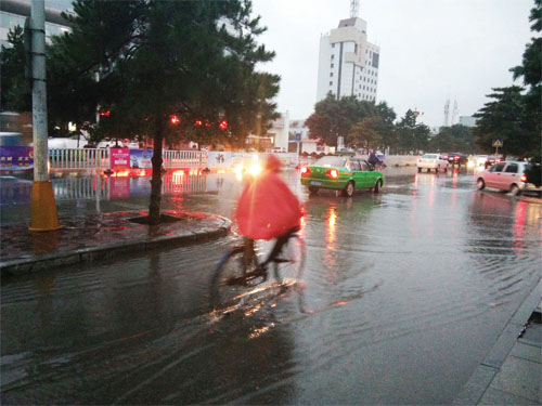 7月19日下午,連陰暴雨稍有緩解。記者首先驅(qū)車趕到市醫(yī)院舊址路段,這里是昔日波濤洶涌的地方,而今是紅綠燈灼灼,街面車來人往,雨流順暢。在人流密集、鋪面林立的老巷利民街,打傘買賣的人們絡(luò)繹不絕。記者沿主干道七一路北上,繞云中河景區(qū)一圈,沿牧馬路返回,再往建設(shè)路逡巡。在忻州污水處理廠,值班的高經(jīng)理告訴記者,市內(nèi)主干、支干及管道全部實(shí)施雨水、污水分流,全部暢通無阻,日處理能力在6萬噸以上。云中河景區(qū)主任孫曉雷早已領(lǐng)著職工沖向一線,在分流壩上調(diào)度洶涌的雨水,嘗試補(bǔ)充需求在70萬立方米以上的河水。記者最后一站來到市氣象局,24小時全天候值守的預(yù)報(bào)員說,從18日夜色中突來的強(qiáng)降雨,十幾個小時達(dá)到近年來最高值110.9毫米,占全年平均降水量1/4強(qiáng)。分為藍(lán)色、黃色、橙色的災(zāi)害預(yù)警信號連升三級。早8時,市委書記李俊明進(jìn)入設(shè)在市水利局的應(yīng)急總指揮部指揮,而市長鄭連生趟雨在城區(qū)幾個重點(diǎn)地段巡查。風(fēng)雨中,記者既看到一幅幅生動畫面,也感受到種種雨中情。無論在哪條街巷,時常闖入鏡頭、遇到最多的是頭戴斗笠,身著橘紅色工作服的環(huán)衛(wèi)工人,他們冒雨用鐵鍬或掃帚清理下水道口。如果加上交警和消防隊(duì)員,那就是雨中最美的一道風(fēng)景線。記者走進(jìn)已建成的大西高鐵客運(yùn)站,綠蔭蒼翠之中,滴滴雨珠如粒粒水晶豆,在光潔如鼓的柏油路上敲打、濺碎,那真是一種美妙。