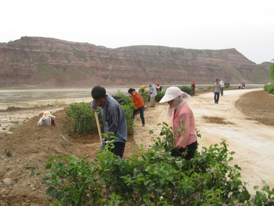 9月4日,河曲縣黃河岸邊20多名工人正在栽植丁香綠化帶。入秋以來,該縣對初具規(guī)模的濱河濕地公園優(yōu)化提質(zhì)和適當(dāng)擴展,一方面增修了公園曲徑、小亭,一方面對公園邊緣進行補綠,在護河堤栽植爬地柏、三七景天,空擋地帶栽植丁香,進一步增加綠化面積,提升公園檔次和品位。據(jù)悉,該公園面積達450畝。(賈金理 攝)
