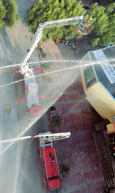 9月26日,在忻州師范學院內,當?shù)叵啦块T舉行了國慶節(jié)前應急疏散演練,其中包括滅火器材使用、火場逃生自救等演練項目