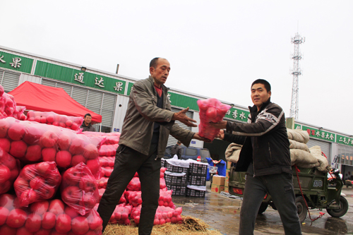 10月23日,原平市果農(nóng)正在德金城農(nóng)產(chǎn)品交易市場(chǎng)卸貨,進(jìn)行銷售。原平市著力打通農(nóng)產(chǎn)品銷售渠道,通過創(chuàng)建市場(chǎng)、加強(qiáng)管理,將當(dāng)?shù)剞r(nóng)產(chǎn)品規(guī)范到統(tǒng)一銷售場(chǎng)所,抱團(tuán)銷售農(nóng)產(chǎn)品,不僅方便了消費(fèi)者,而且便于走出去,打造知名品牌。(吉建平 攝)