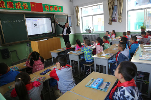 近日,在靜樂縣愛樂希望小學(xué),學(xué)生正通過交互式多媒體教學(xué)方法上課。老師高興地說:“有了多媒體真方便,以前講一個(gè)例題要花幾分鐘抄寫在黑板上,現(xiàn)在只需幾秒鐘就顯示在頻幕上,既節(jié)省時(shí)間又提高課堂效率?!苯陙恚摽h加大教育投資力度,改善辦學(xué)條件,為學(xué)生上課提供便利。(閆曉梅 攝)