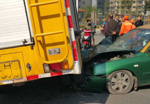 11月3日上午11時許,在忻州市區(qū)建設北路與杏林街十字路口發(fā)生兩車相撞事故,事故造成一人負傷,目前傷者已送往醫(yī)院接受治療。事故現(xiàn)場,一輛出租車和一輛黃色的市政工程車相撞,黃色市政工程車的右后輪騎壓在出租車前臉,出租車前臉已被壓扁,黃色市政工程車油箱柴油外溢,事故原因正在調查中。(郝法林)