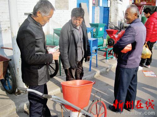 十一月十七日是河曲縣巡鎮(zhèn)趕集日,十里八鄉(xiāng)的農(nóng)民紛紛趕來選購(gòu)小型農(nóng)機(jī)具。近年來,該縣農(nóng)民在農(nóng)機(jī)具購(gòu)置補(bǔ)貼政策鼓勵(lì)下,購(gòu)買農(nóng)機(jī)熱情高漲,極大地提高了農(nóng)業(yè)生產(chǎn)效率。圖為農(nóng)民正在購(gòu)買播種機(jī)。(賈金理 攝)