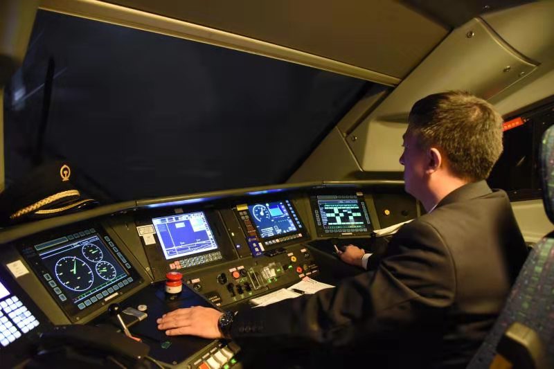 當(dāng)D6770次列車到達呼和浩特東站,弓國慶登上機車,與換班司機交接完畢后,插入IC卡,認真核對行車數(shù)據(jù)、確認操縱臺各儀表……各項安全準備工作無誤后,隨著機車前方發(fā)車信號變?yōu)榫G燈,與車站進行車機聯(lián)控確認,隨著一聲汽笛長鳴,動車組緩緩駛出呼和浩特東站?!皬氐撞t望,確認信號,高聲呼喚,手比眼看”的標準化作業(yè)與每三十秒腳踩提醒踏板的一系列操作流暢默契……盡管這種周而復(fù)始的工作他已重復(fù)了成千上萬遍,但從不敢松懈。