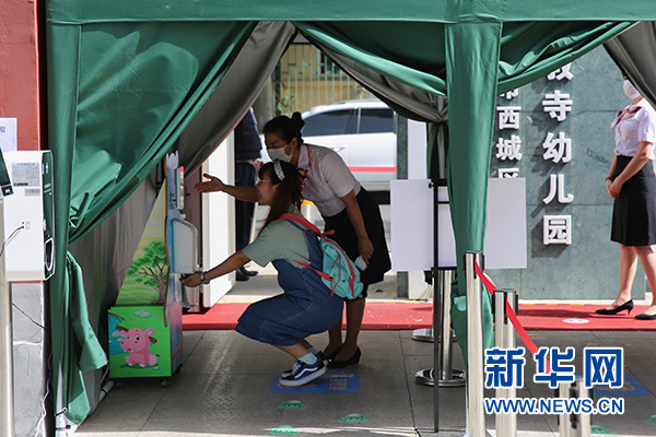 新華網(wǎng)北京6月4日電 6月3日,為做好兒童返園準(zhǔn)備,北京市西城區(qū)三教寺幼兒園進(jìn)行了開園模擬演練。此次演練由幼兒園老師扮演家長和孩子,旨在讓老師知曉幼兒園防護(hù)措施且有的放矢地去開展活動,并通過線上的方式讓孩子們知道如何進(jìn)行自我保護(hù)。
