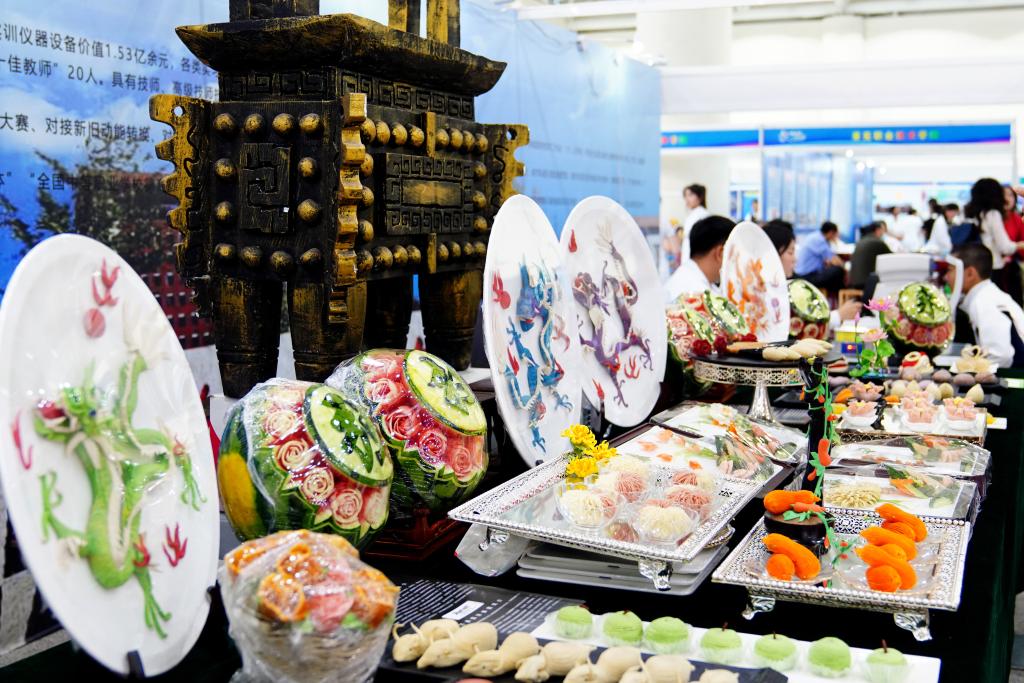 2024年5月11日,在濟(jì)南舜耕國(guó)際會(huì)展中心,濟(jì)南市技師學(xué)院展示師生創(chuàng)作的作品。新華社記者 郭緒雷 攝