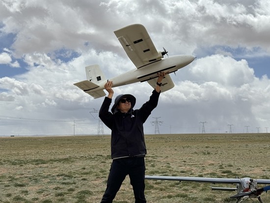 桂維振在可可西里放飛無人機。北京工業(yè)職業(yè)技術(shù)學(xué)院供圖