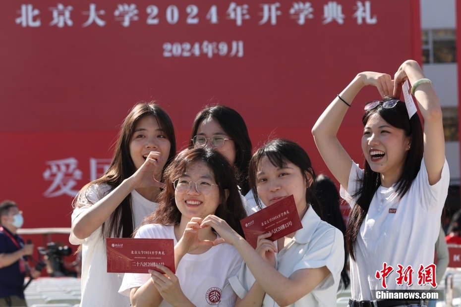 資料圖:新生在開(kāi)學(xué)典禮后合影留念。中新社記者 蔣啟明 攝