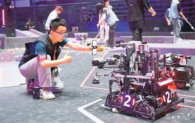 5月21日至5月25日,全國(guó)大學(xué)生機(jī)器人大賽——RoboMaster2025機(jī)甲大師超級(jí)對(duì)抗賽·區(qū)域賽(中部賽區(qū))在湖南省長(zhǎng)沙市舉行。圖為合肥工業(yè)大學(xué)蒼穹戰(zhàn)隊(duì)隊(duì)員在比賽間隙調(diào)試機(jī)器人。新華社記者 陳振海攝